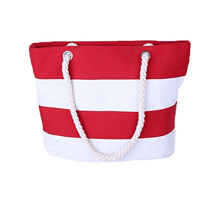 Bolso Playa Lona Algodon Lineas Roja Con Cierre Eva 44x34