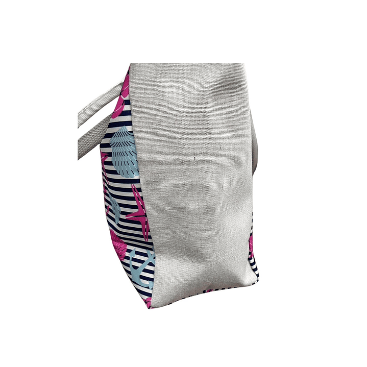 Bolso Playa Lona Algodon Coral Con Cierre Fuelle Grande