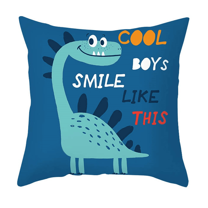 Funda Cojin 45x45 Dinosaurio Azul Lino Poly