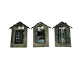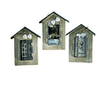 Marco de foto confeccionado delicada madera con terminaciones de Haya y con una entretenida estructura la cual simula una casita don sus persianitas de celocias de madera, por donde puede visualizar la foto en su interior