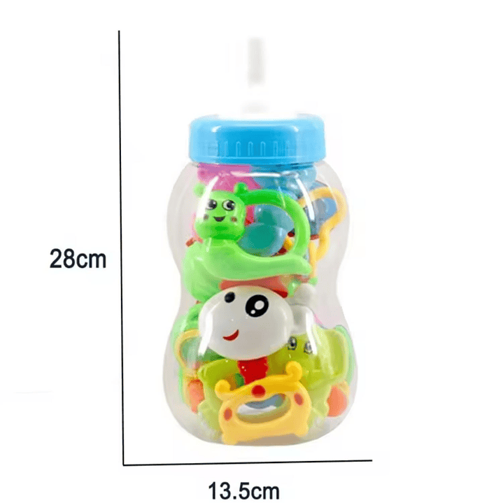 Set de 8 unidades de sonajeros y mordedores de regalo para recién nacido, es ideal para la entretención del bebe.