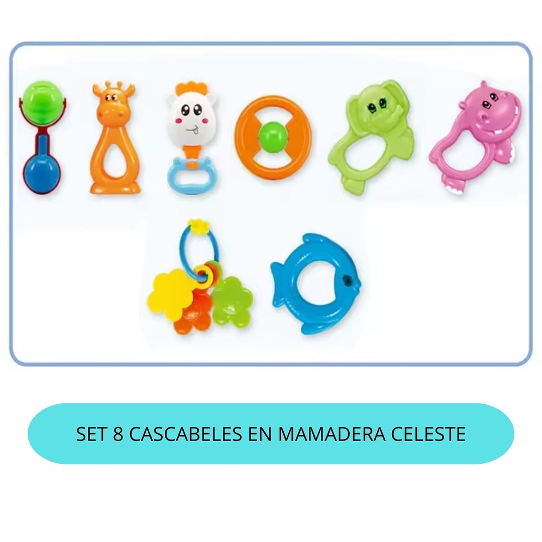 Set Sonajeros Cascabel Mordedor Bebe Celeste 8 Piezas