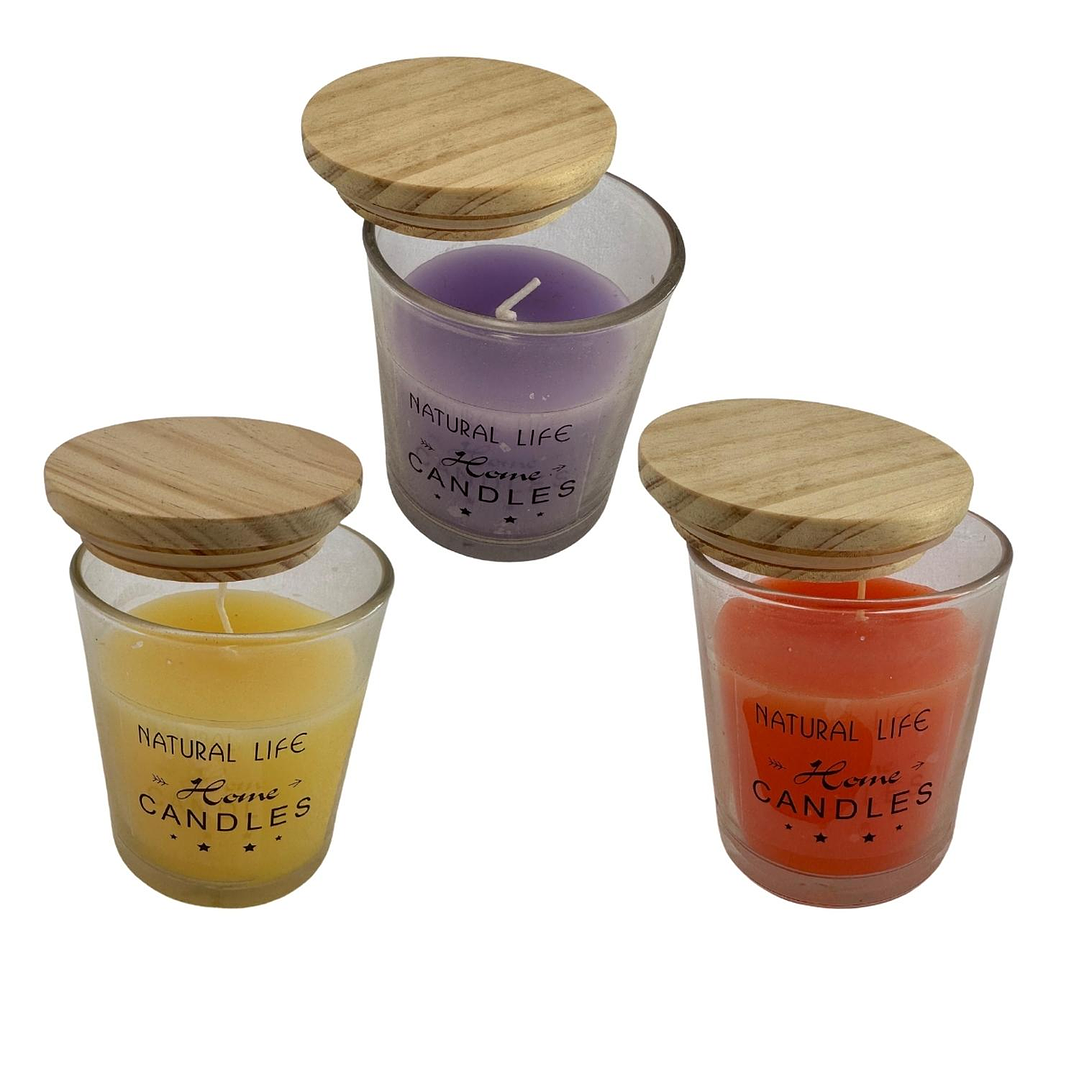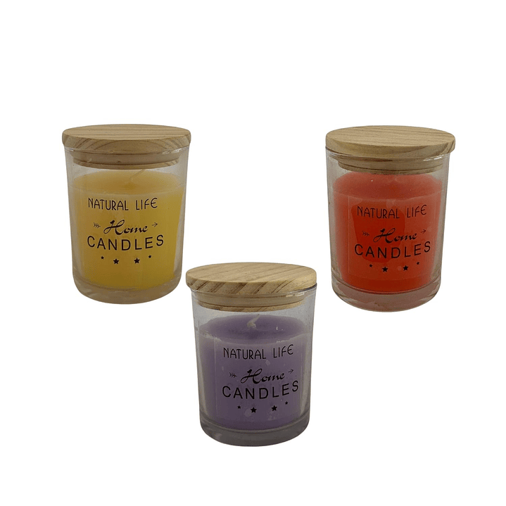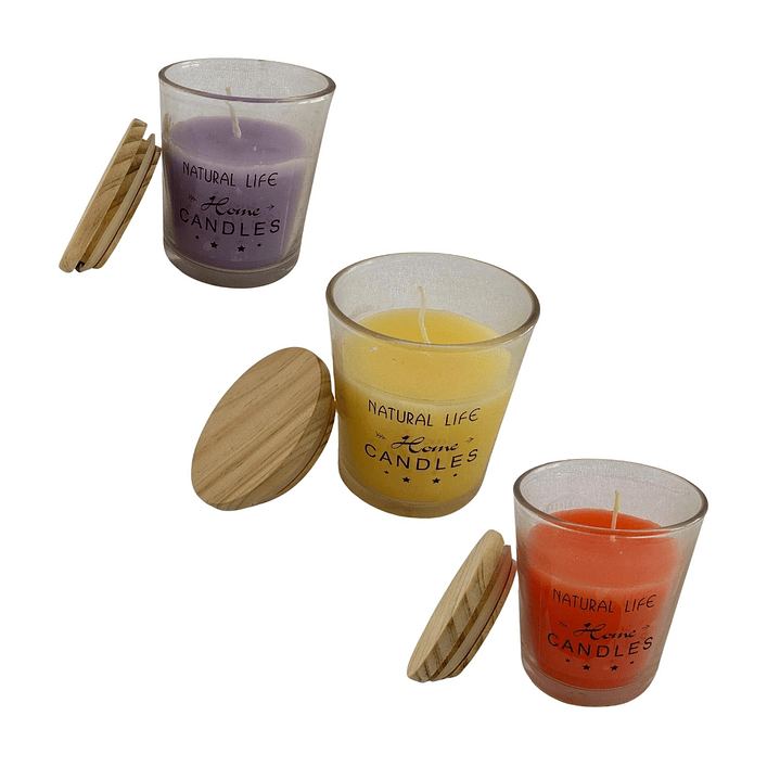Vela Aromatica Decorativa Tapa Madera Pack De 3 Diseño B